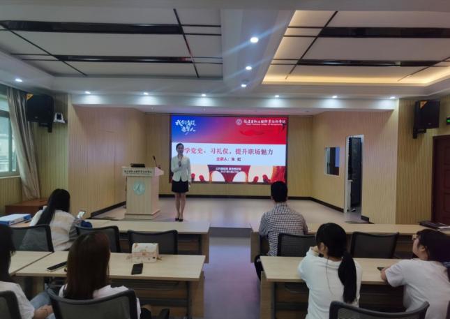 百年征程波澜壮阔,百年初心历久弥坚。在中国共产党成立一百周年之际,我校公共基础部回顾党的奋斗历程,热情讴歌党的光辉业绩,继承和发扬党的光荣传统,扎实开展“建党100周年”党史学习教育。4月27日下午,美育教研室在洪山校区学术报告厅举办文明礼仪专题培训,邀请了国际礼仪培训师朱虹老师为我校师生带来了题为《学党史、习礼仪,提升职场魅力》的专题讲座。讲座由美育教研室主任张舒敏老师主持,我校100多名学生参加了此次活动。
