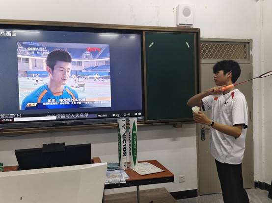 活动现场,社团指导老师唐福杰老师进行了羽毛球基础知识的讲解,系统介绍了握拍姿势、发球规则、比赛规则等技术要领。羽毛球社长进行了实践演示,将理论要点转化为直观动作,并组织社员分组练习。社员们在听讲与互动中逐步掌握技术细节,有效提升了运动技能。社团还组织观看了羽毛球主题纪录片《羽球之光》。影片不仅展现了运动员的拼搏精神与羽毛球运动的文化传承,也引导社员在锻炼身体的同时,深入理解中华体育精神的深刻内涵,实现了技能锻炼与精神培育的双重目标。