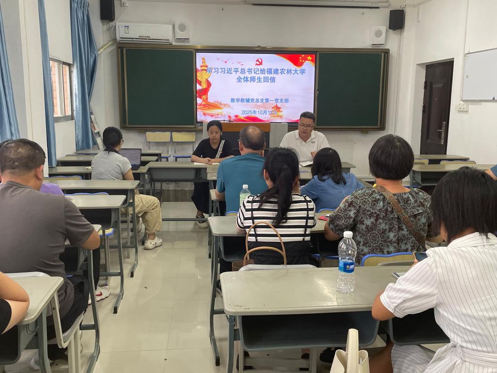 10月14日下午,教学教辅党总支第一党支部在3号楼501室组织开展集中学习活动,传达学习习近平总书记给福建农林大学全体师生的回信等重要讲话和指示精神。