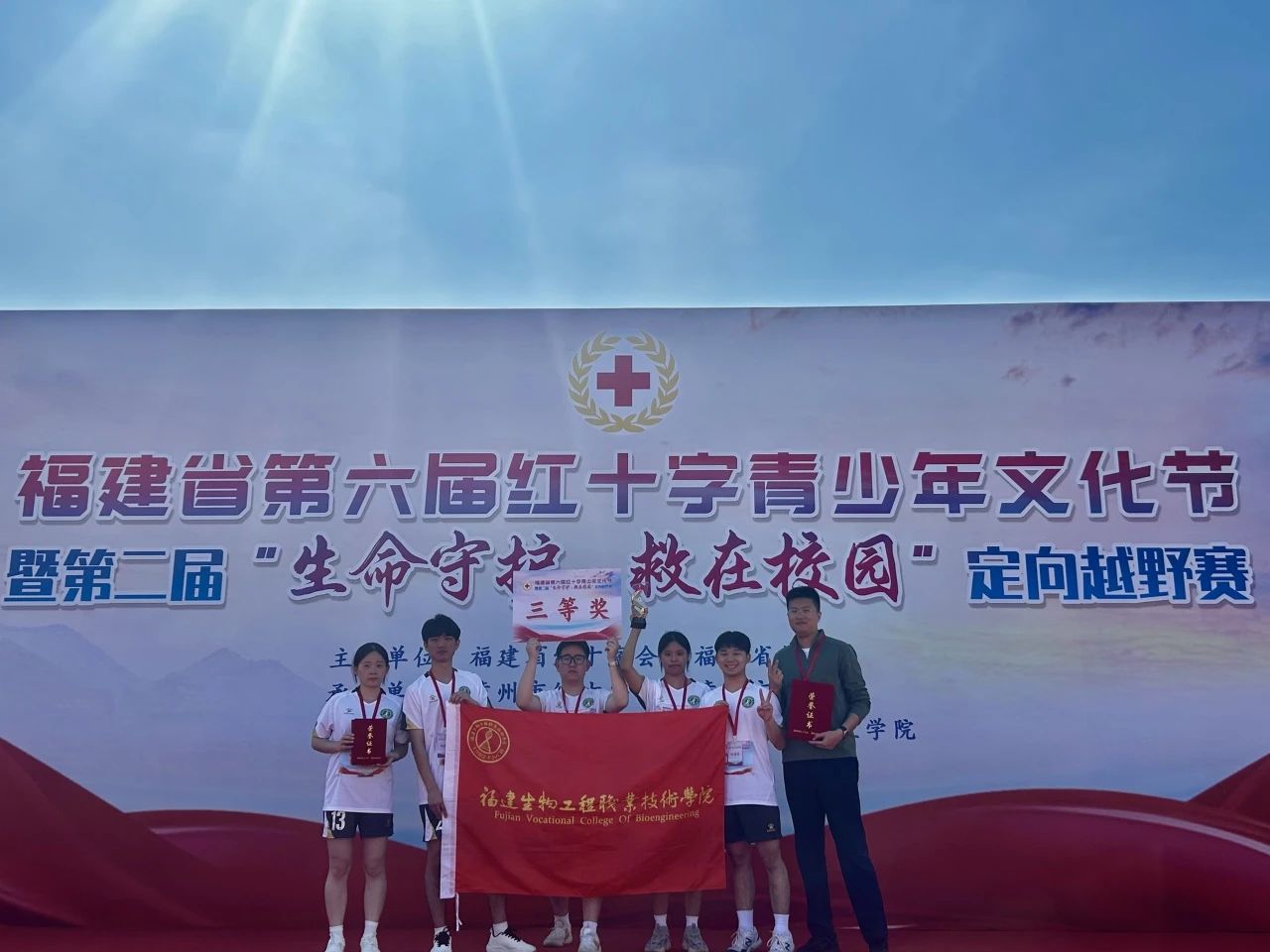 2024121日,福建省第二届生命守护·救在校园” 定向越野赛于漳州科技职业学院顺利举行。我校来自康复保健系陆锡铭、黄伟杰、黄嘉南、蔡于娜,健康管理系吴淑欣五位同学组成的定向越野队前往漳州参加了此次比赛,队员们经过前期培训、中期训练以及后期老师指导,认真积极备赛。在激烈的角逐下,我校代表队通过共同努力取得了总成绩第九,获得本次大赛三等奖。