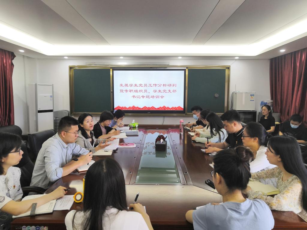 为做好2022年度学生党员发展工作,4月29日,组织统战部召开发展学生党员工作分析研判暨专职组织员、学生党支部书记专题培训会。