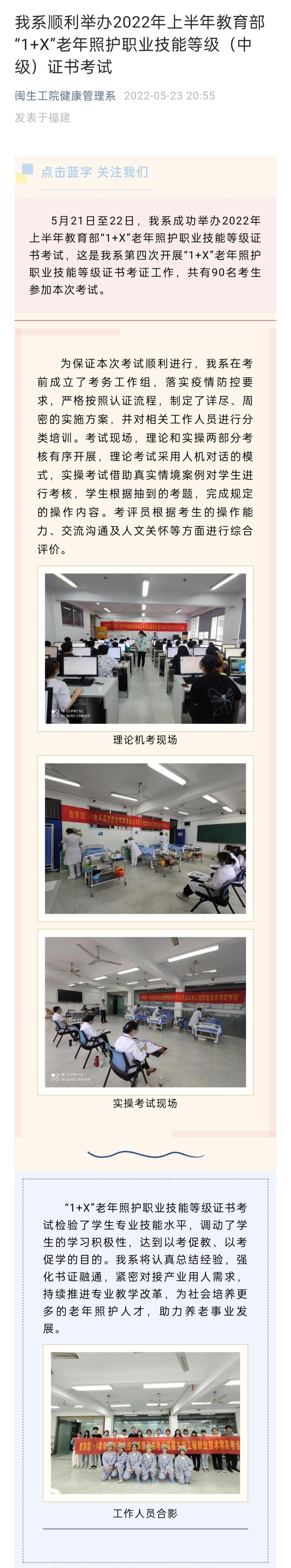 我系顺利举办2022年上半年教育部“1+X”老年照护职业技能等级(中级)证书考试