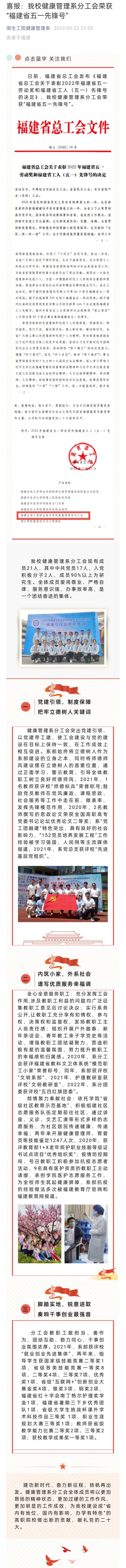 喜报:我校健康管理系分工会荣获“福建省五一先锋号”