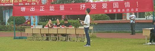 2015年10月19日下午,经营管理系师生在铜盘校区操场举行了以“唱出正能量,抒发爱国情”为主题的拉歌活动。