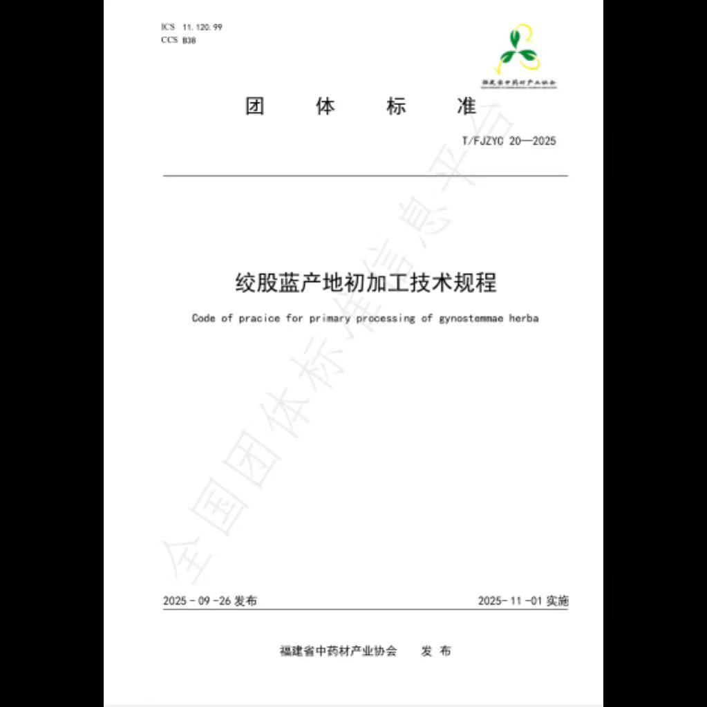 近日,由福建省中药材产业协会牵头、福建生物工程职业技术学院、福建省农业科学院作物研究所等单位共同主导制定的《绞股蓝规范化生产技术规程》(T/FJZYC 19—2025)、《绞股蓝产地初加工技术规程》(T/FJZYC 20—2025)两项团体标准正式发布实施。这是福建省针对“福九味”绞股蓝制定的首个标准化技术文件,将为绞股蓝种植、加工提供科学指导,助力产业提质增效与品牌升级。