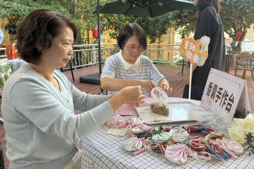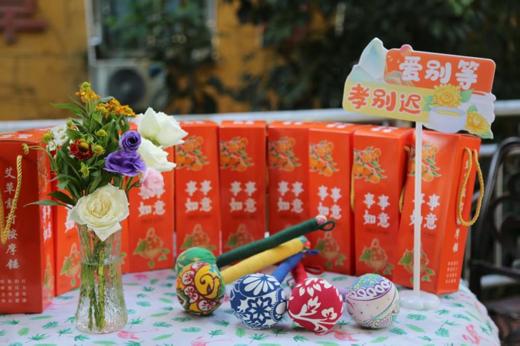 中药材点缀的养生区域,老同志们互相协作,亲手制作养生锤与养生香囊。一针一线,一缠一绕,不仅传递出对健康生活的美好祝愿,更凝结着彼此间深厚的情谊。现场欢声不断,暖意流动。