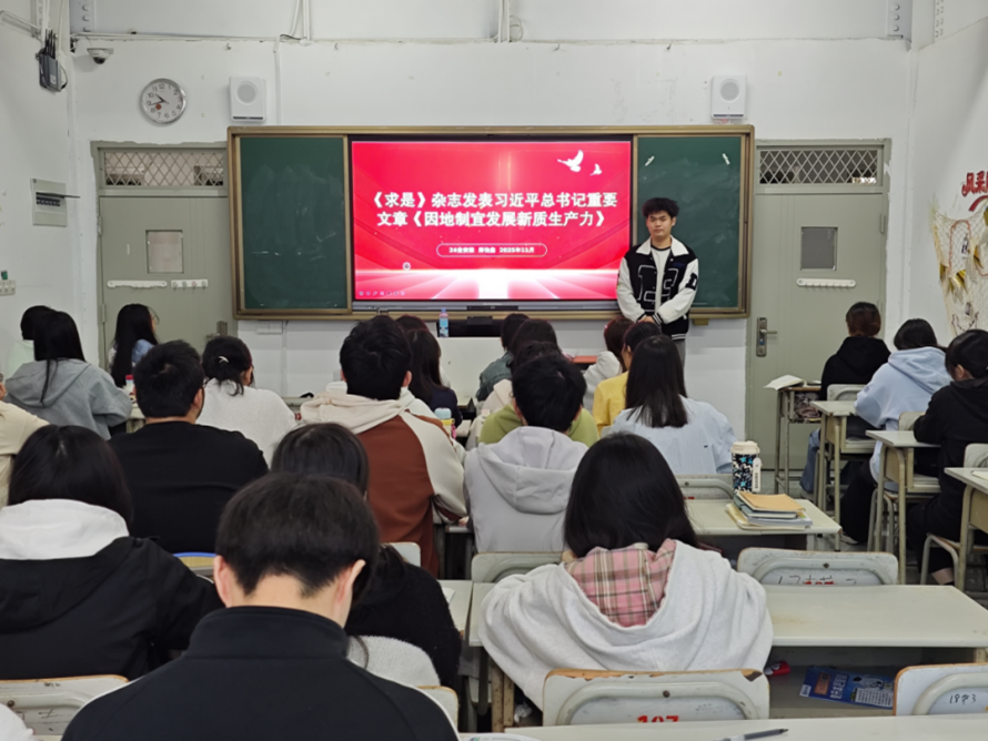 健康食品系于2025年11月组织各班主要围绕中国共产党第二十届中央委员会第四次全体会议公报和《求是》杂志发表习近平总书记重要文章《因地制宜发展新质生产力》的内容开展政治理论学习。