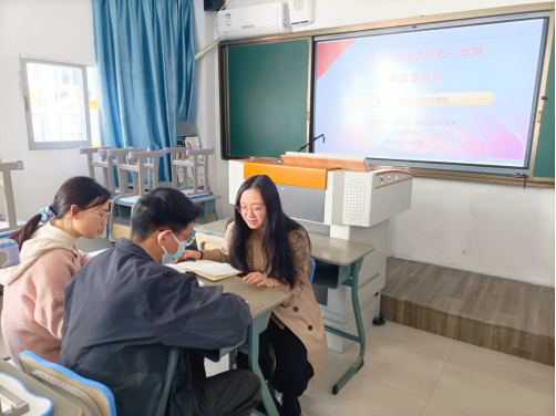 为深入推进《毛泽东思想和中国特色社会主义理论体系概论》课程教学改革,精准突破社会主义改造理论教学重难点,切实将党的二十届四中全会精神融入课堂教学,2025年11月25日下午,我校马克思主义学院毛泽东思想和中国特色社会主义理论体系概论教研室在洪山校区3号楼502教室开展2025-2026学年第一学期第三次集体备课会。会议由教研室主任叶倩主持,聚焦“教学难点怎么破、课堂问题怎么解、时政精神怎么融”三大核心问题,推动理论教学与价值引领同频共振。