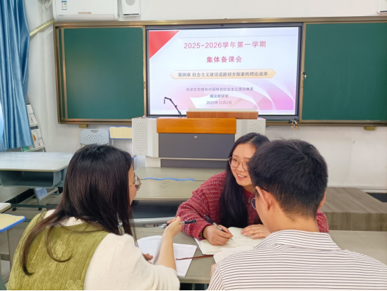为深化《毛泽东思想和中国特色社会主义理论体系概论》课程教学改革,切实提升“社会主义建设道路初步探索的理论成果”专题教学质量,2025年12月2日,我校马克思主义学院毛泽东思想和中国特色社会主义理论体系概论教研室开展本学期第四次专题备课会,围绕“师生互动设计”与“鲜活案例融入”两大议题展开深入研讨。
