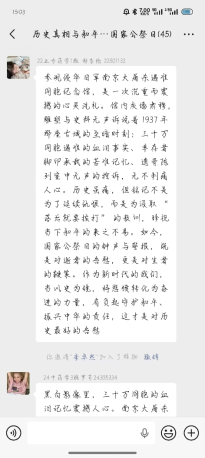 为缅怀为中国人民抗日战争胜利献出生命的革命先烈和民族英雄,铭记历史,珍爱和平,弘扬爱国主义精神,12月9日下午,习近平新时代中国特色社会主义思想读书社开展了国家公祭日主题教育活动。