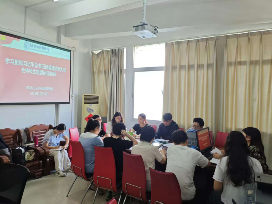 2025年10月14日,马克思主义学院直属党支部组织全体党员教师召开专题学习会,深入学习贯彻习近平总书记给福建农林大学全体师生的重要回信精神,会议由直属党支部书记高凤妹主持。