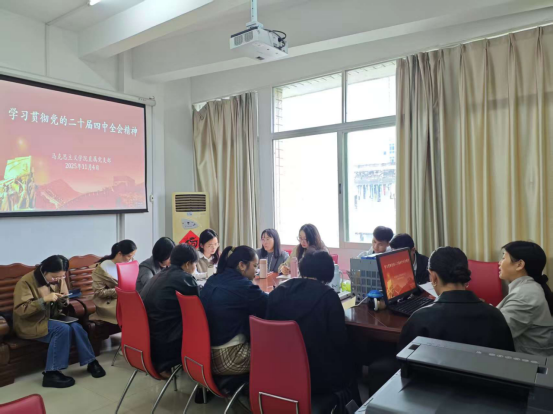 11月4日下午,马克思主义学院直属党支部召开支部理论学习会,专题学习贯彻党的二十届四中全会精神。会议由直属党支部书记高凤妹主持,全体教师党员参会。