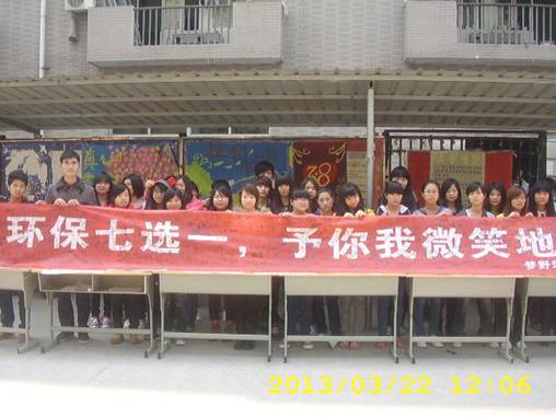 本台报道 为倡导环境保护,提高同学们的环保意识,响应世界自然资金会的号召,围绕“减碳1+1”开展一系列活动,3月23日晚,由中共市委福州市文明办福州市环保局、福州市环保协会鼓楼区人民政府、鼓楼区环境保护局、福建省环保志愿者协会、绿闽青年交流服务中心、福建省气象局主办、梦野环保协会承办于我院齐安校区操场举办以“环保七选一,予你我微笑地球”为主题的晚会并于8:30—9:30熄灯一小时。