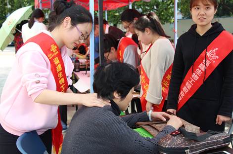 2018年3月27日下午2点,新一年的社区健康养老服务在第一站——福州市仓山区金洲社区拉开帷幕。当日活动由学院社团联合承办,共计12个社团参与其中。华医社、功法社、美容社、药膳社等专业类社团为社区老年人提供了康复理疗、手部护理、功法表演、春季养生茶品鉴等服务;书法社等文化艺术类社团则为社区老人传播了书法养生知识,展示了书法作品;红十字会等爱心公益类社团现场为老人测量血糖血压,宣传家庭急救常识。学院健康使者作为学院形象大使,积极热情地引导现场数十位老人有序参与到各项服务中。