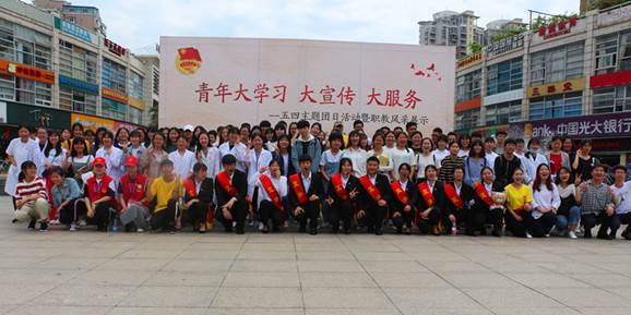 为纪念五四运动99周年和马克思诞辰200周年,值“职业教育活动周”开展之际,福建生物工程职业技术学院组织第八期“青马工程”大学生骨干培训班全体学员前往福州市金山榕城广场开展“青年大学习 大宣传 大服务”五四主题团日活动暨职教风采展。活动以1+N形式进行,即开展一场十九大主题宣讲,提供N项志愿服务。