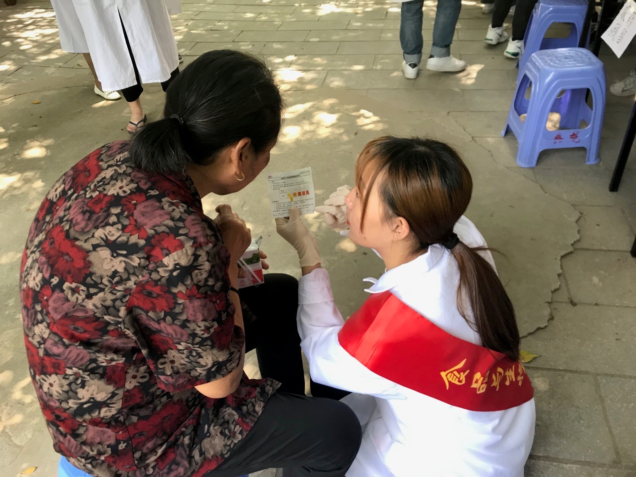 党员教师志愿者带领生物产品检验专业学生深入社区,围绕居民生活中密切关心的健康检测问题进行讲解,为居民测量血压,并现场演示农残速测、表面洁净度测试、牛奶、面粉类食物硼砂检测、食醋游离矿酸等项目的快速检测。