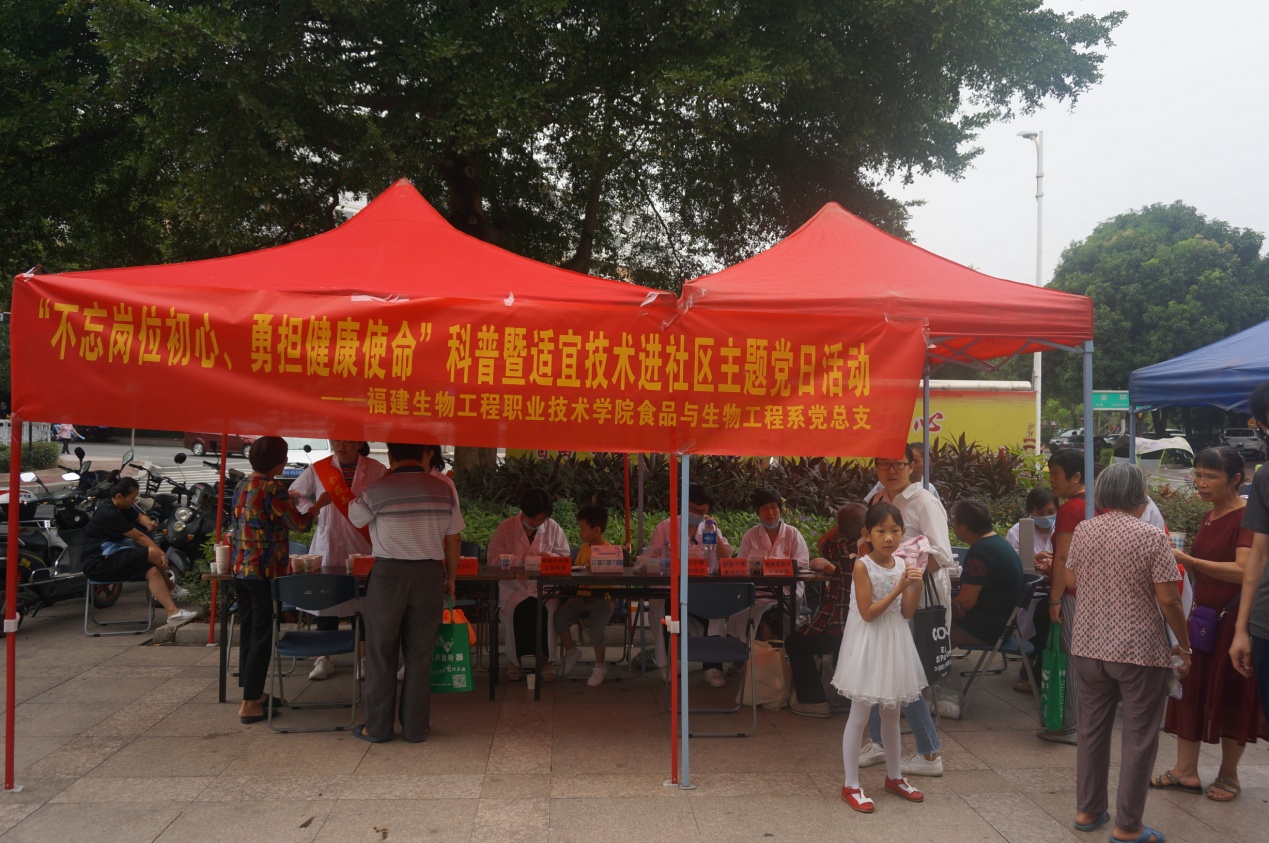 为贯彻落实学校第二批“不忘初心、牢记使命”主题教育工作部署,响应国家“健康中国行动”号召,弘扬“奉献、友爱、互助、进步”的志愿服务精神,我校食品与生物工程系党总支于10月13日上午在金洲社区开展“牢记岗位初心,勇担健康使命”科普暨适宜技术进社区主题党日活动。