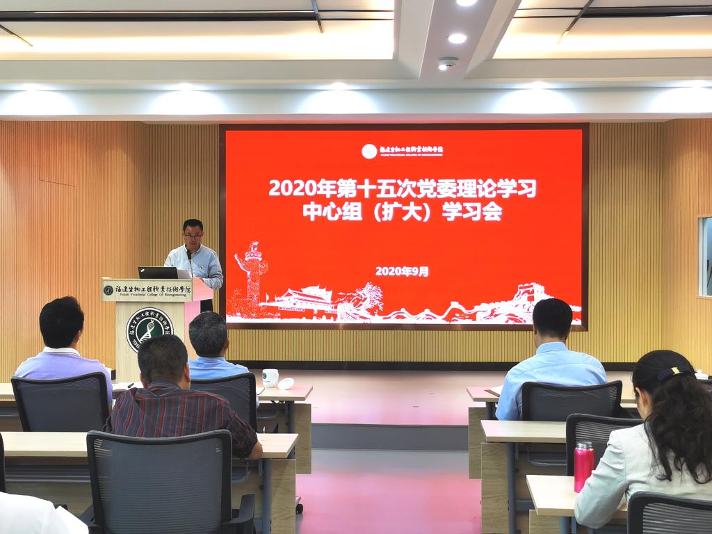 9月29日上午,校党委召开第十五次理论中心组(扩大)学习会,校领导班子成员、各部门负责人和系部党政领导参加了学习,会议由党委书记林志华主持。