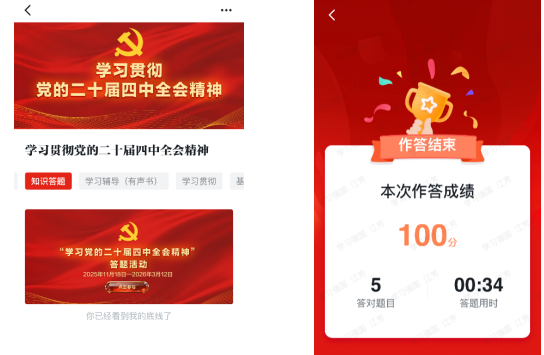 为巩固学习成果,活动现场组织“学习党的二十届四中全会精神”线上答题活动。全体教工党员踊跃参与、认真作答,以考促学、以学促用,实时检验学习成效,推动全会精神入脑入心、落地生根,为后续推动药学教育高质量发展筑牢思想与行动根基。