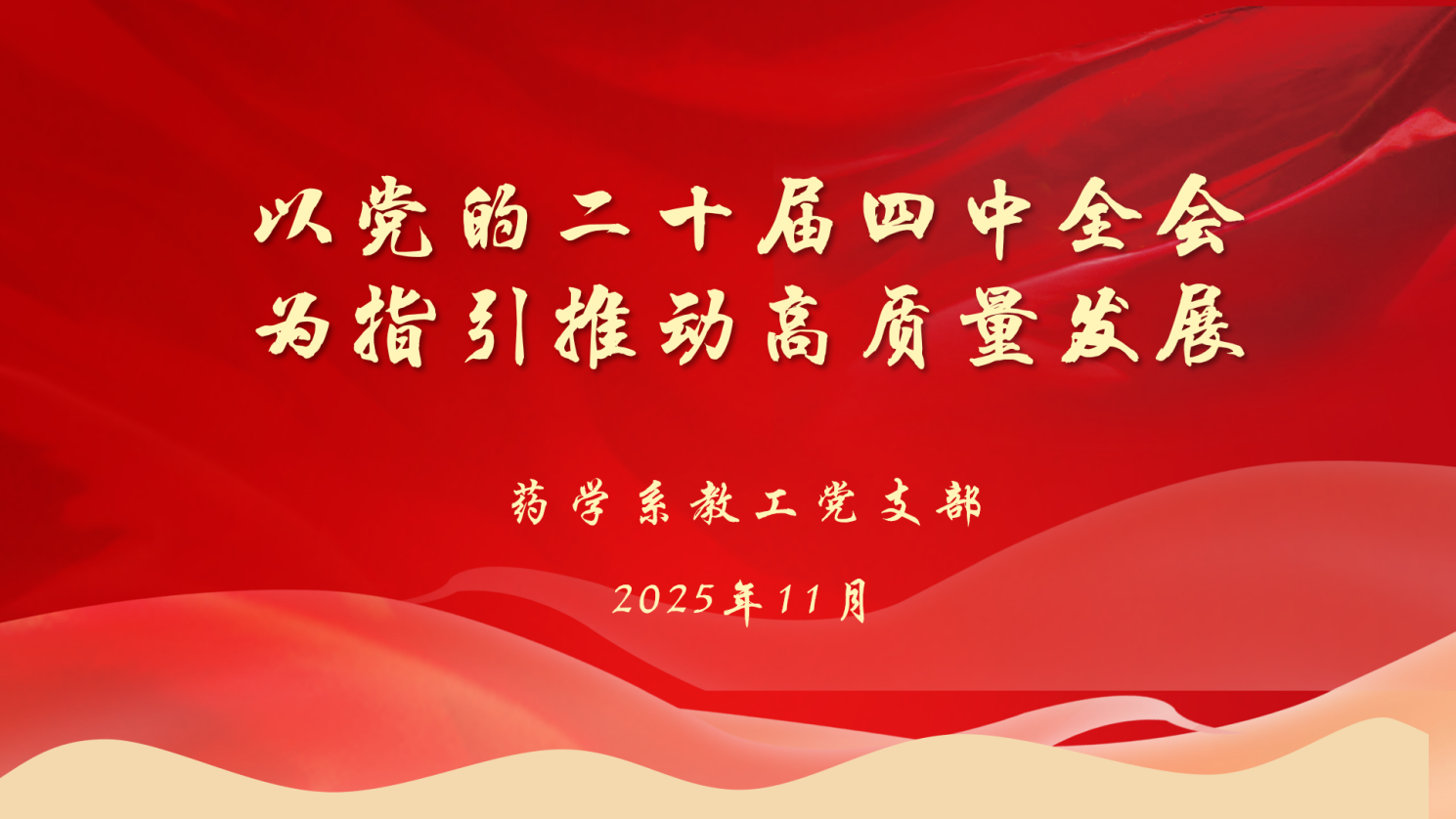 为深入学习贯彻党的二十届四中全会精神,切实把全系教工党员的思想和行动统一到全会决策部署上来,将学习成果转化为推动我系药学教育高质量发展的强大动力,11月25日下午,药学系教工党支部开展“以党的二十届四中全会为指引推动高质量发展”的主题党日活动。