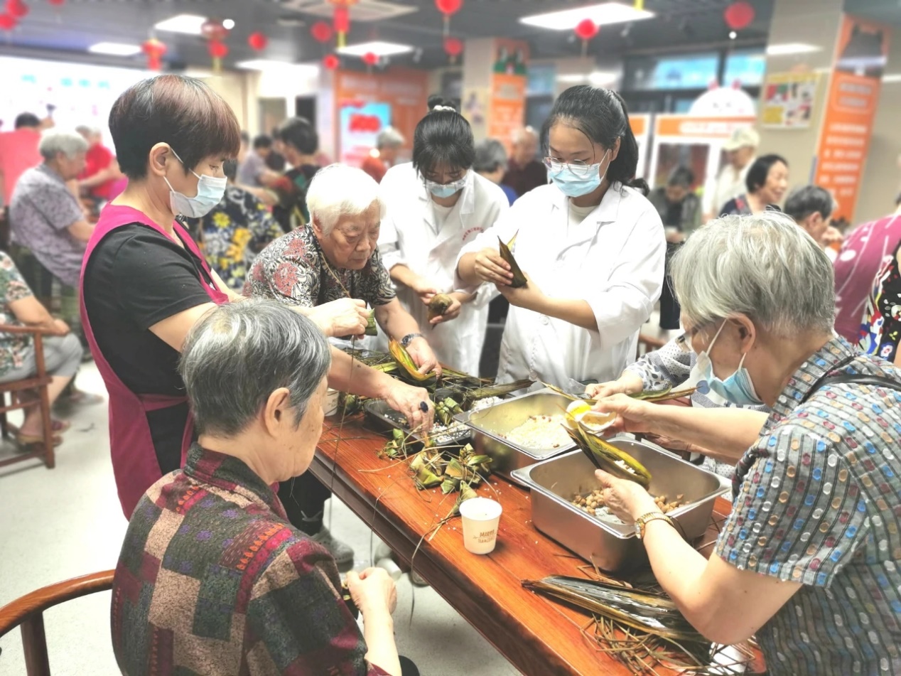 活动过程中,我系师生精心准备了健脾祛湿药粽材料,与老人们一起包粽子、祈安康;并现场发送了端午安康茶、防疫茶、安神茶、山药葛根茶、决明子菊花茶等五种茶包及防疫香囊。活动现场欢声笑语,热闹温馨,老人们纷纷表示“今天就像在家里过节一样”。